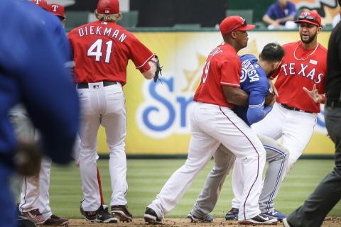 In their ensuing exchange, and before Bautista could exhale from puffing out his chest in a dare, Odor punched him in the jaw, inciting a melee that carried on for the next 10 minutes.